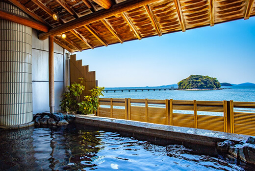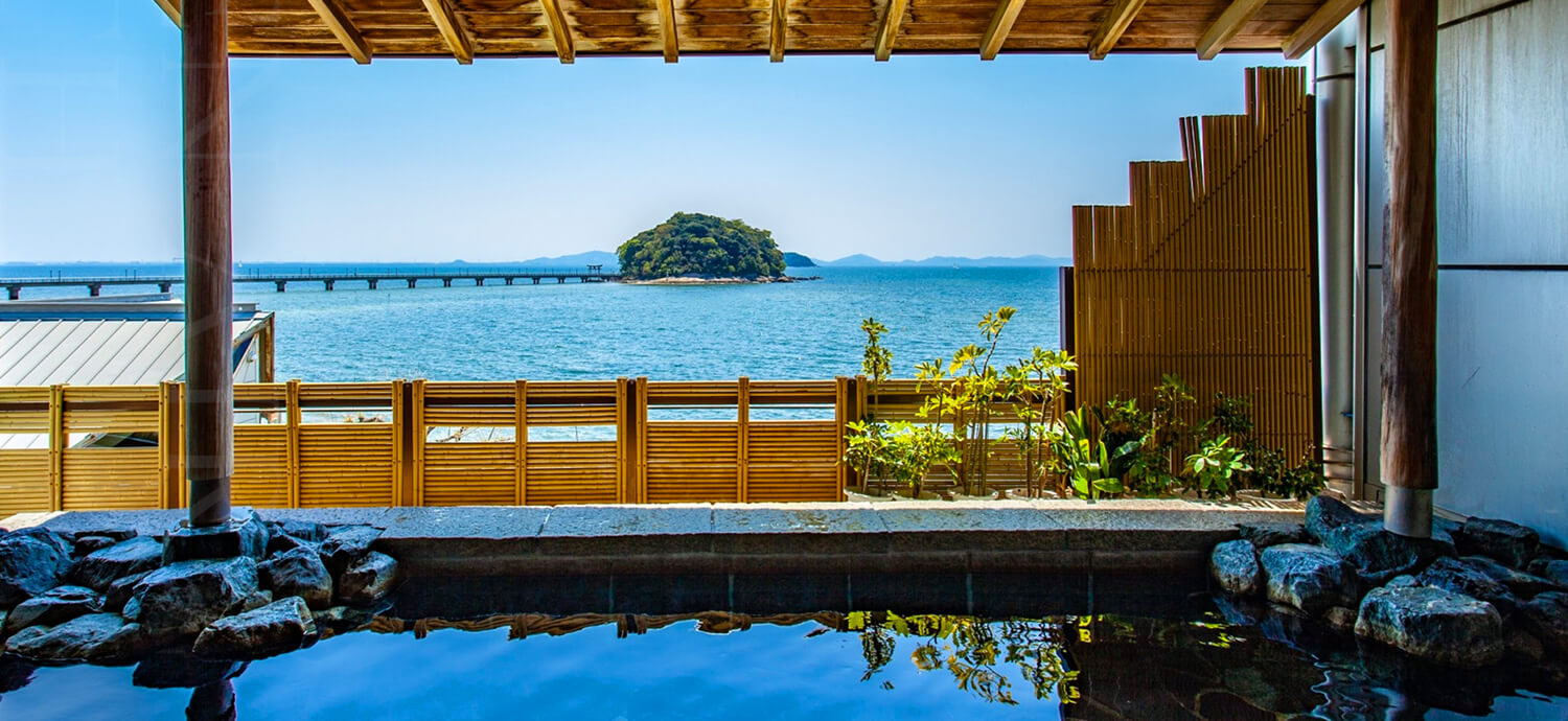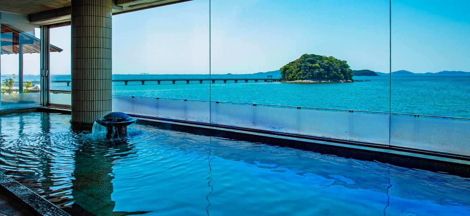 湯船がガラス越しの三河湾と繋がっているような、